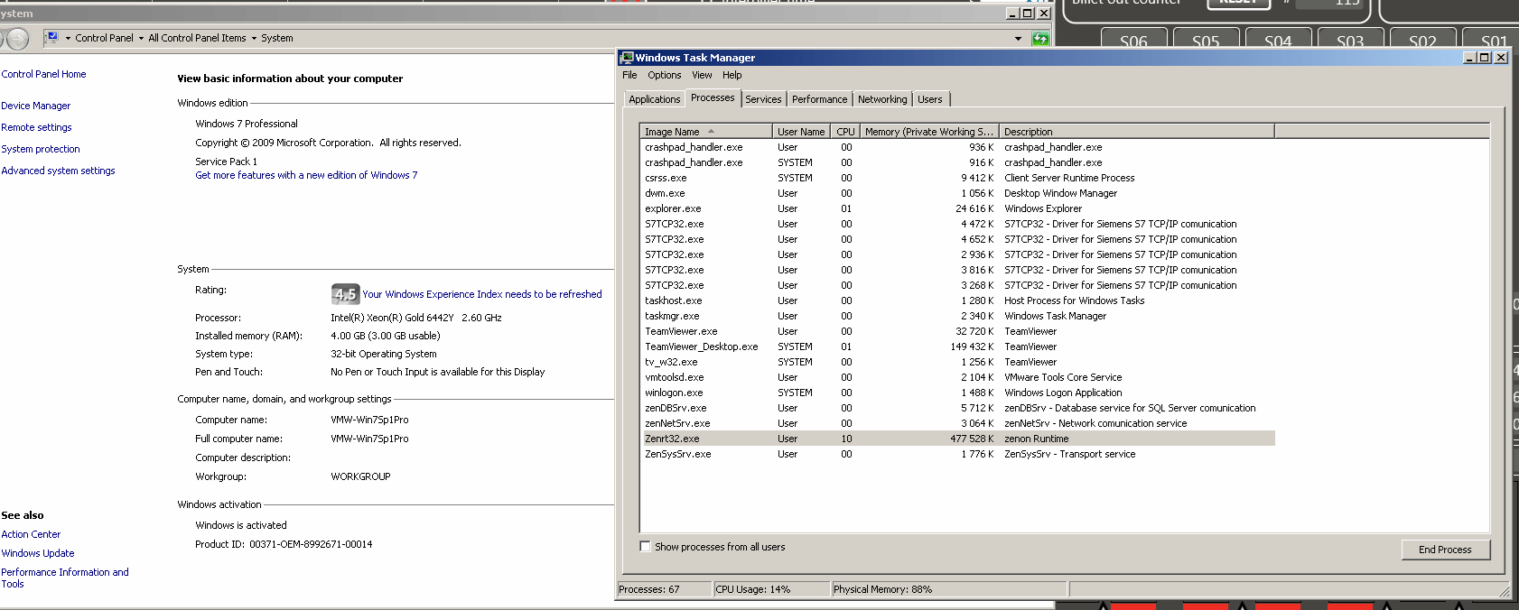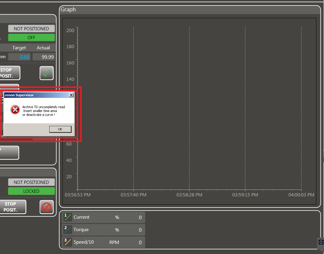 I have old project in Zenon 7.00 SP0 build 13, and we use VM with Windows 7 Professional (32-Bit OS) for testing new pages we had to add in project, and since September it was working fine, but in last week and a half it started to show popup at screens with trends/graphs (screen type: extended trend; control element\Window\Diagram window). Message "Archive TD uncompletely read. Insert smaller time area or deactivate curve!". I have changed time from 3min to 1 min, and Historian is set to cycle read by deafult zenon settings. (i saw cycle is recommended for analog values, not to use on change), also it's recommended to have 4GB of RAM, but windows 7 can use max to 3GB.