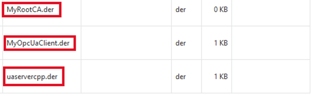 - Add the exported client certificate (*.der), the certificate of the CA, and the server certificate to the subfolder certs