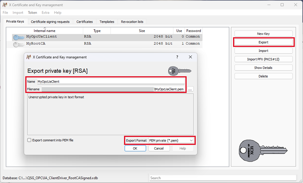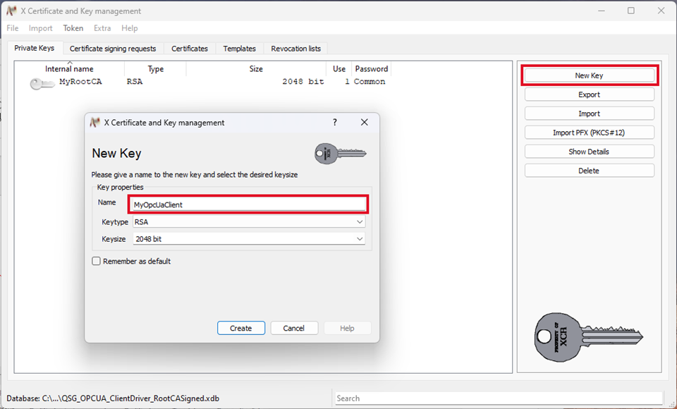 For security reasons, the file containing the private key shall only be deployed to the machine running the OPC UA Driver!