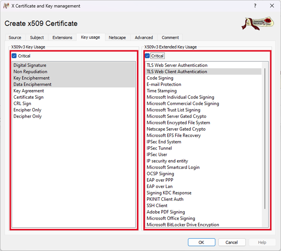 - Select Digital Signature, Non Repudiation, Key Encipherment, Data Encipherment