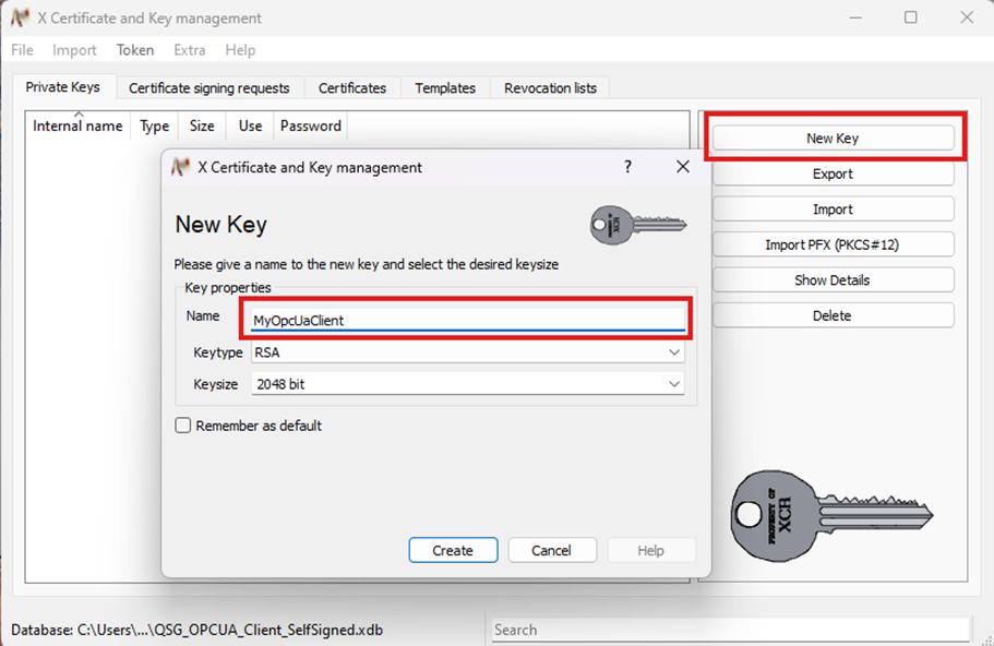 - Go to the tab Private Keys and press New Key