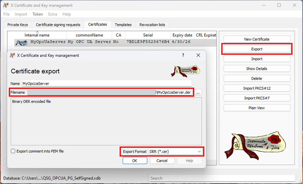 In this example the file uaexpert.der represents the certificate of a trusted client.