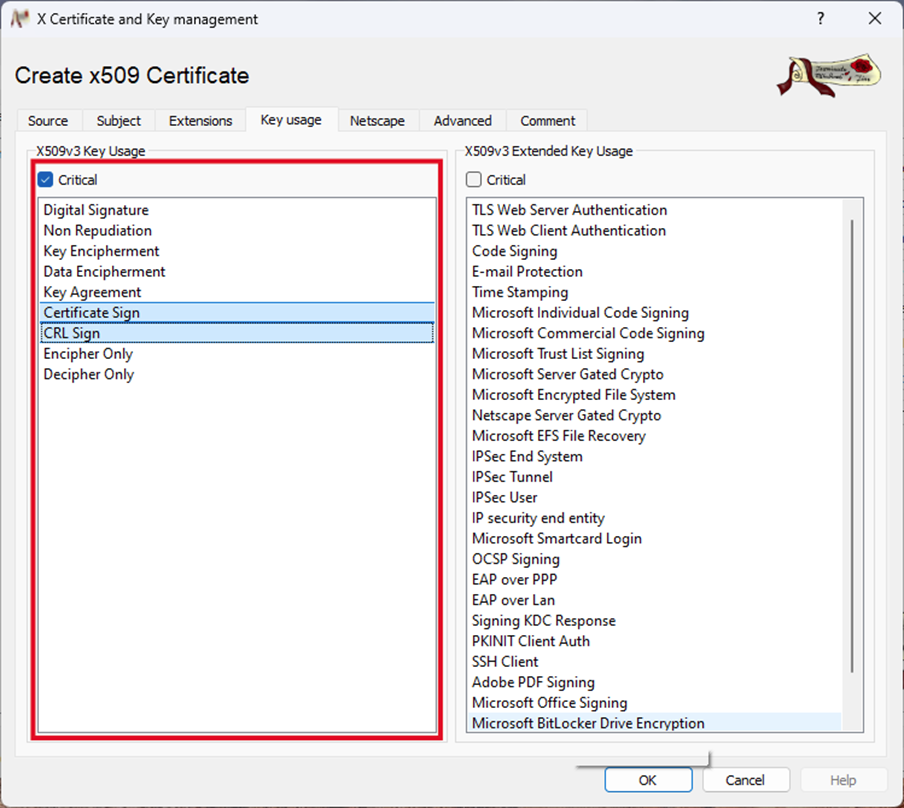 - Set X509v3 Key Usage:
