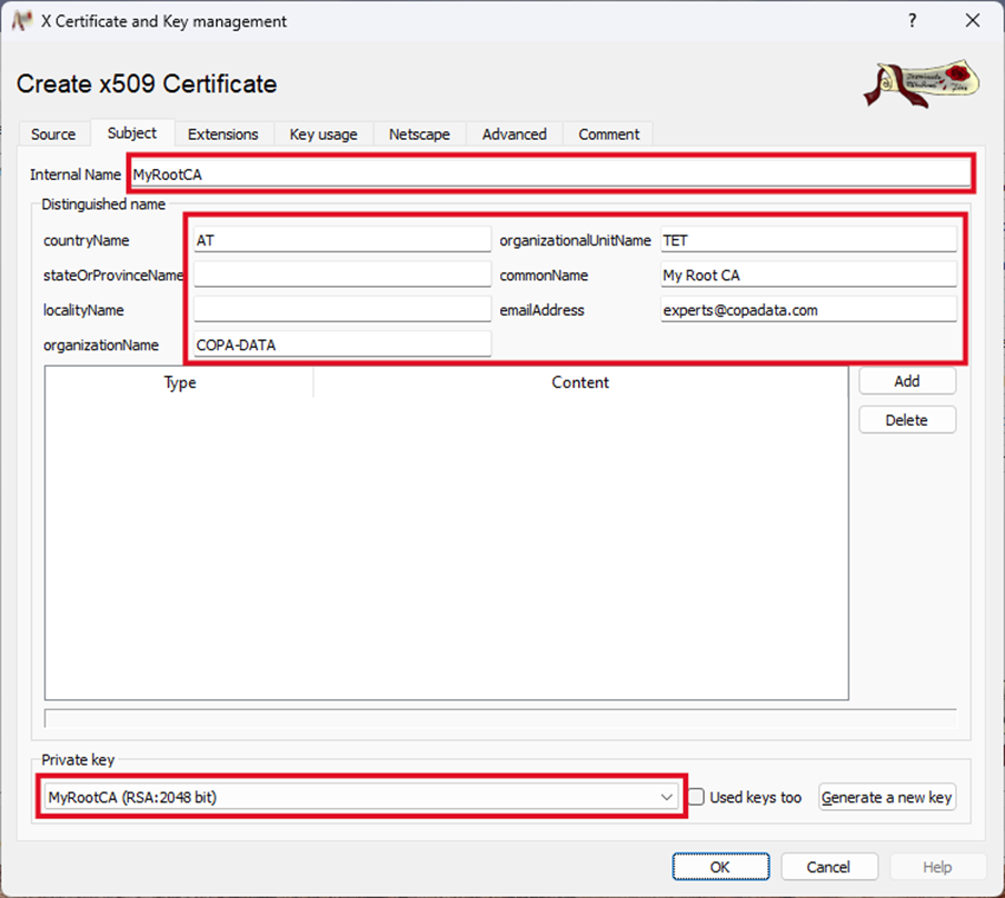 Creating a new Root Certificate Authority using xca