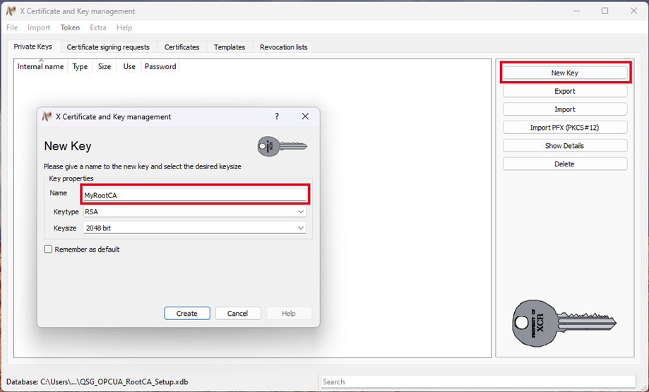 - Go to the tab Private Keys and press New Key